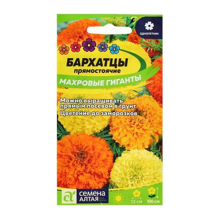 Семена цветов Бархатцы "Тайшан", смесь, Сем. Алт, ц/п, 5 шт