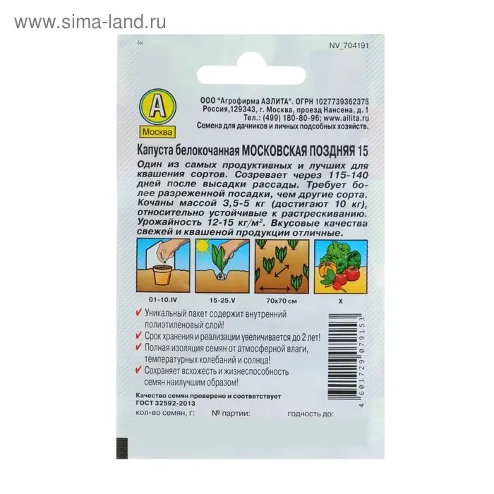 Благодаря внутреннему полиэтиленовому слою пакет не пропускает влагу и увеличивает срок годности семян до 2-ух лет.