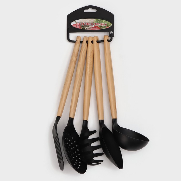 Нейлоновый набор с деревянными ручками из 5 предметов включает в себя: