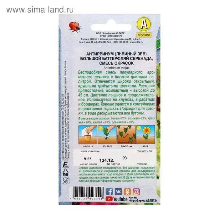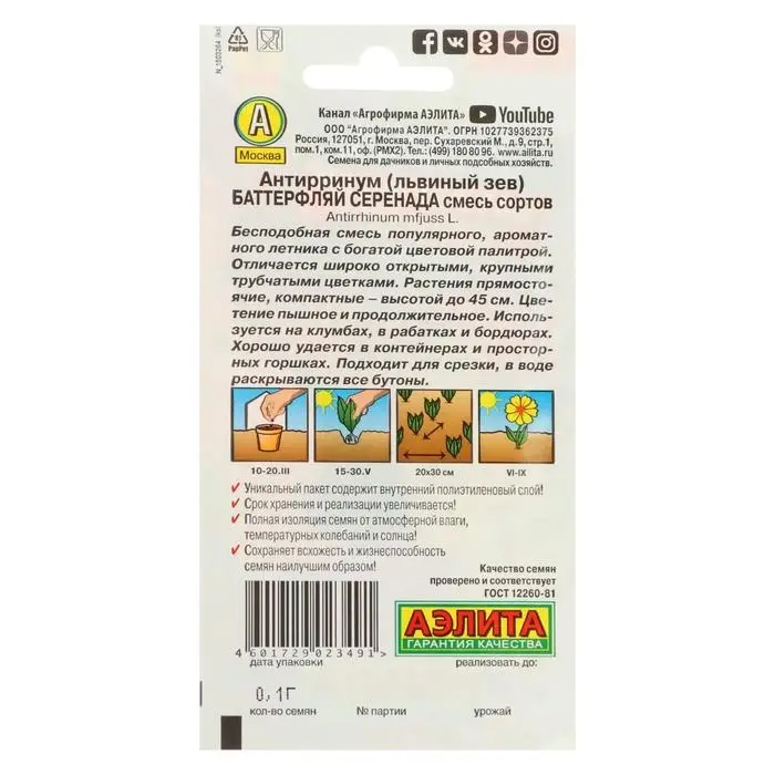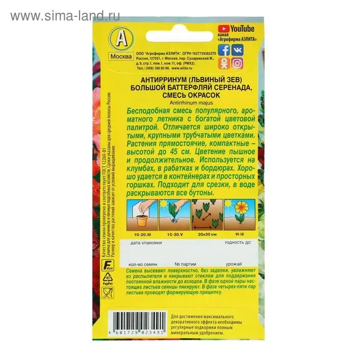 Семена цветов Львиный зев "Баттерфляй Серенада", смесь окрасок, О, 0,1 г