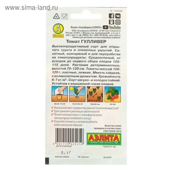 Семена Томат "Гулливер", среднеспелый, 20 шт.