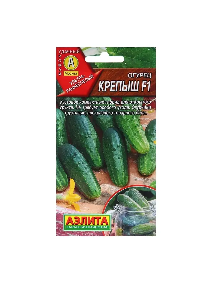 Огурец «Крепыш» — это раннеспелый пчёлоопыляемый сорт для теплиц и открытого грунта. Плодоношение начинается на 48-й день от всходов.