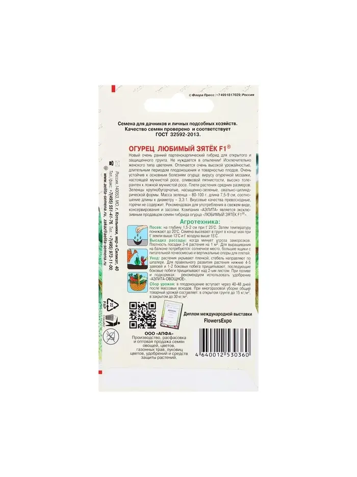 Семена Огурец "Любимый зятек" F1, раннеспелый, партенокарпический, 10 шт