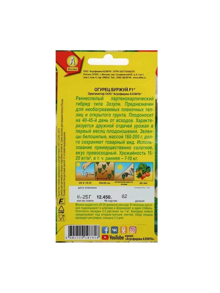 Семена огурца "Великолепная пятерка", F1,набор 5 шт