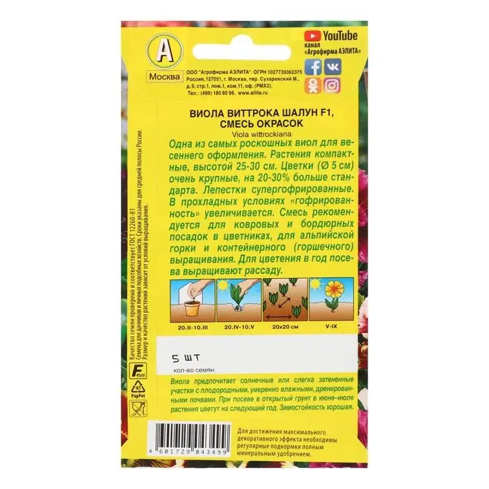 Семена цветов Виола "Шалун", Дв, 5 шт.