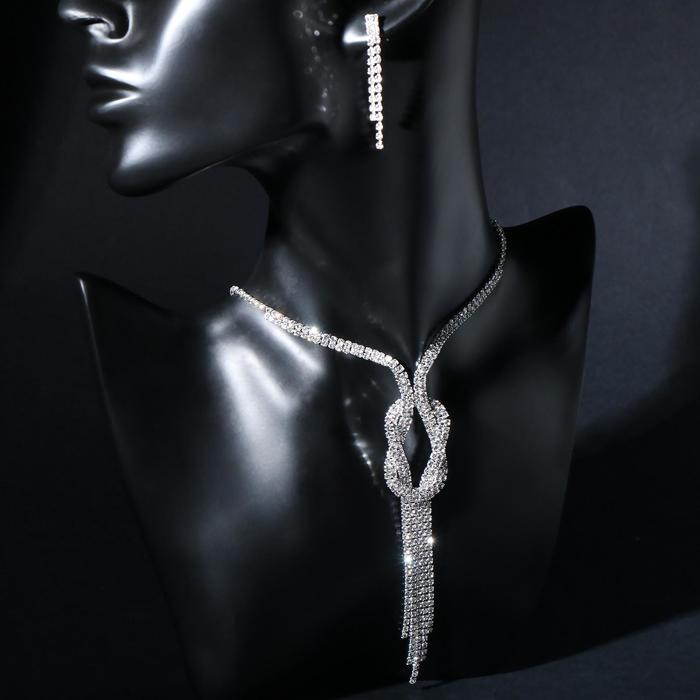 Набор 2 предмета: серьги, колье «Лёд» загиб, цвет белый в серебре, 40см