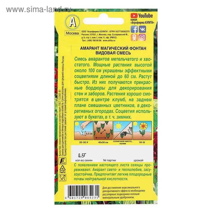 Семена цветов Амарант "Магический фонтан", смесь окрасок, О, 0,5 г