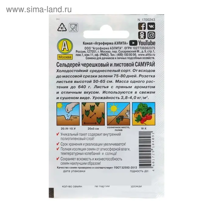 Семена Сельдерей листовой "Самурай" "Лидер", 0,5 г ,