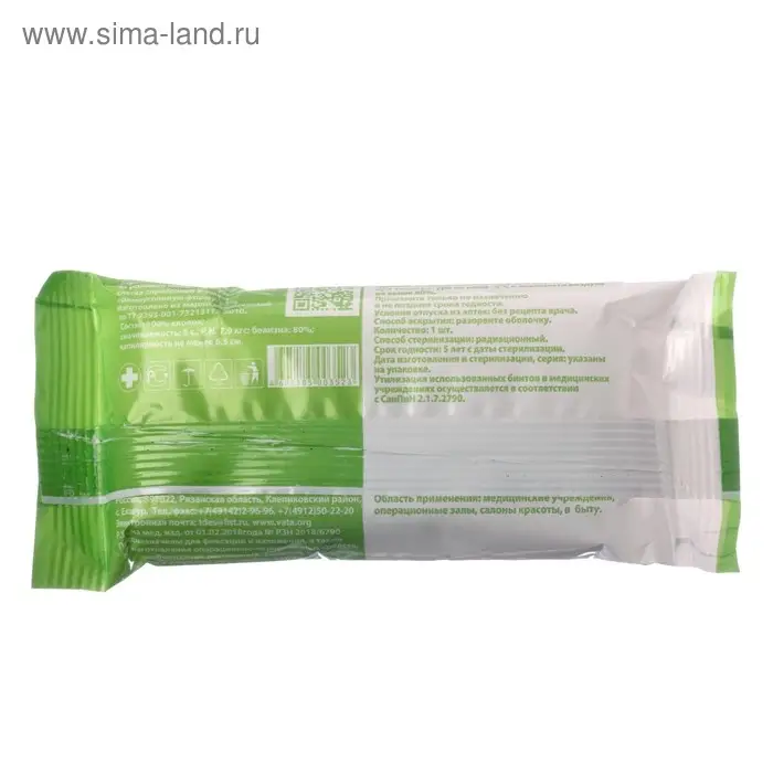 Описание: бинт белого цвета, без цветных и жирных пятен, с обрезанной кромкой, без швов.