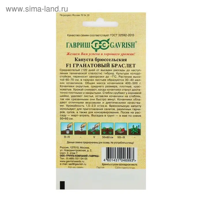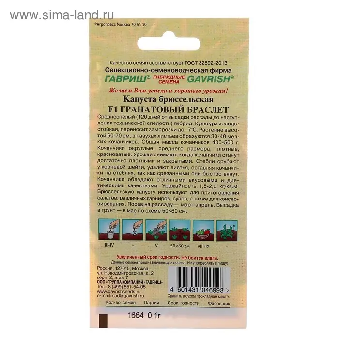 Семена Капуста брюссельская "Гранатовый браслет" F1, ц/п, 0,1 г