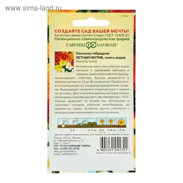 Семена цветов Лапчатка "Летний мотив", ц/п, 0,01 г