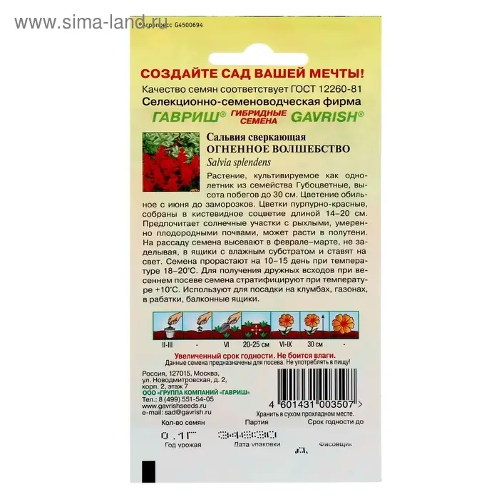 Семена цветов Сальвия "Огненное волшебство", ц/п, О, 0,05 г