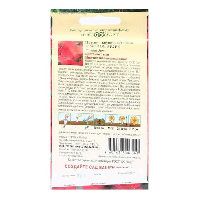 Семена цветов Петуния "Красное море" крупноцветковая, О, гранулы, пробирка, ц/п, 7 шт.