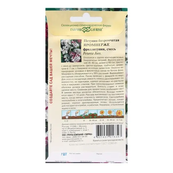 Семена цветов Петуния "Яромнерже", ц/п, О, пробирка, ц/п, 7 шт.