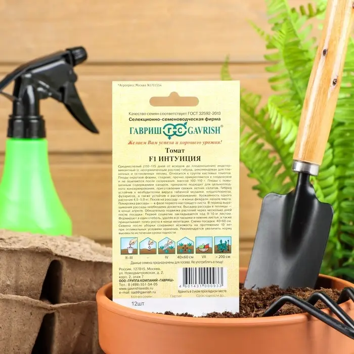 Семена Томат "Интуиция" F1, среднеспелый, индетерминантный,высокорослый,12 шт.