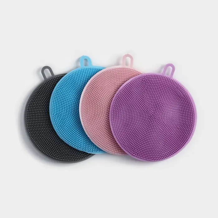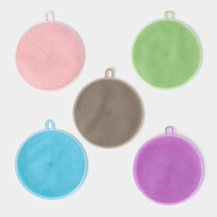 Губка для посуды Доляна, 11×11×1 см, силиконовая, МИКС