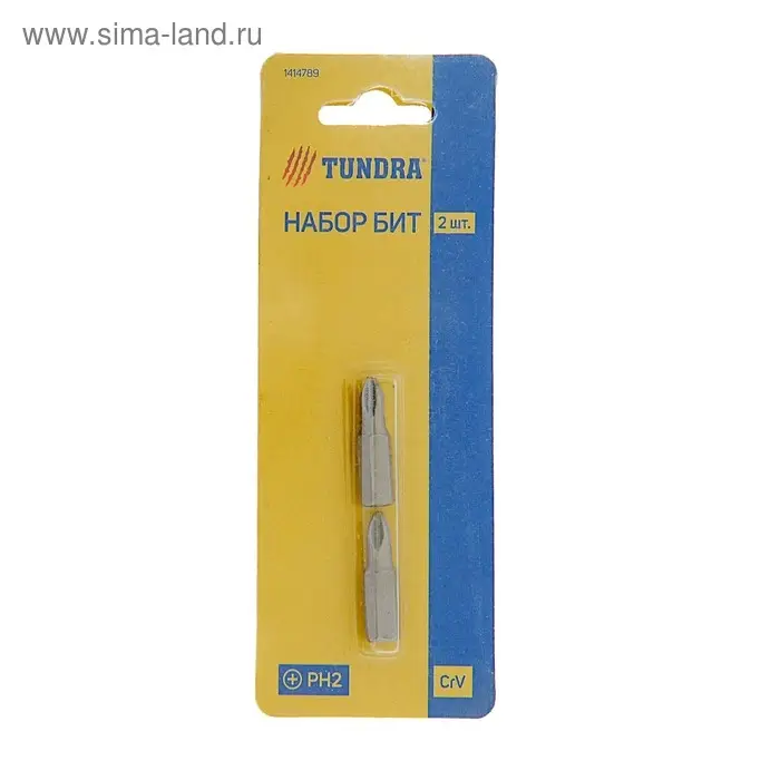 Биты ТУНДРА, намагниченные, сталь CrV, PH2 х 25 мм, 2 шт.