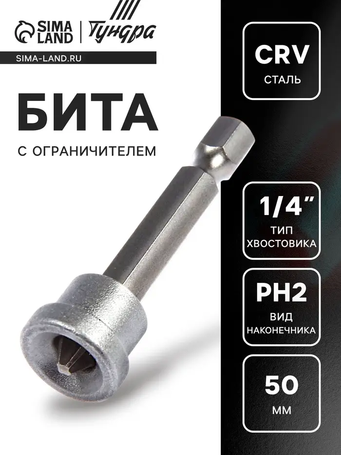 Бита с ограничителем ТУНДРА, для гипсокартона, сталь CrV, PH2 х 50 мм