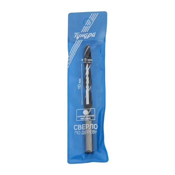 Сверло по дереву ТУНДРА, цилиндрический хвостовик, 8×110 мм