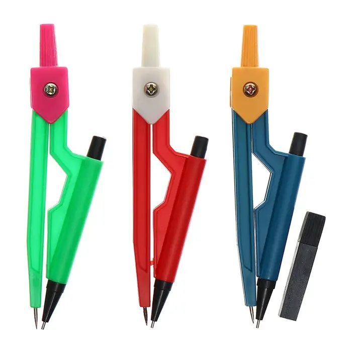 Циркуль пластиковый 120 мм с механическим карандашом, в ПВХ, с грифелями, МИКС