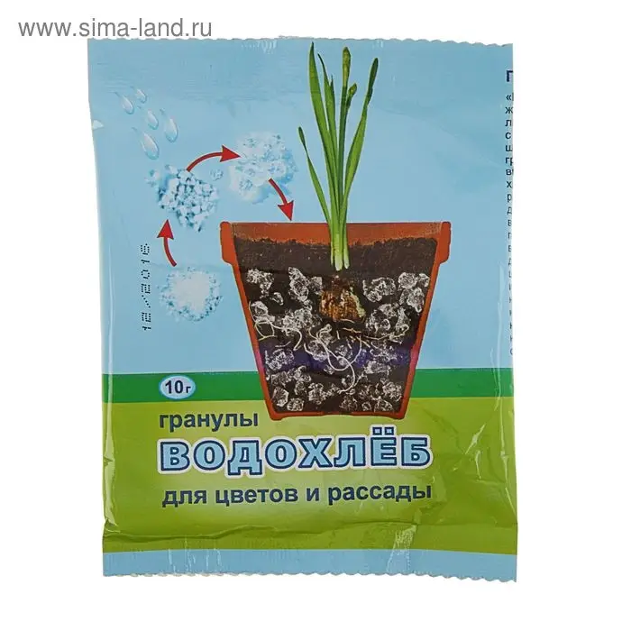 «Водохлеб» гранулы — гранулированный полимер акриламида. Применяется при выращивании комнатных растений, рассады, а также в открытом и закрытом грунте для улучшения водно-воздушного баланса почвы, сокращения числа поливов, улучшения состояния растений и повышения урожайности.