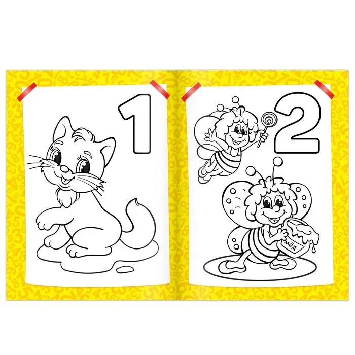 - Каждая страница посвящена одной цифре, что помогает запомнить ее написание и соотнести с количеством предметов.