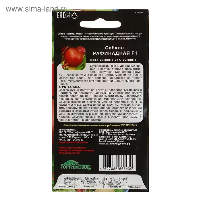 Свёкла «Рафинад» — это очень сладкий высокоурожайный гибрид. Гладкий округлый корнеплод тёмно-красного цвета массой до 300 г обладает отличным вкусом и не теряет цвет при тепловой обработке. Свёкла хорошо растёт на богатых почвах с нейтральной реакцией.