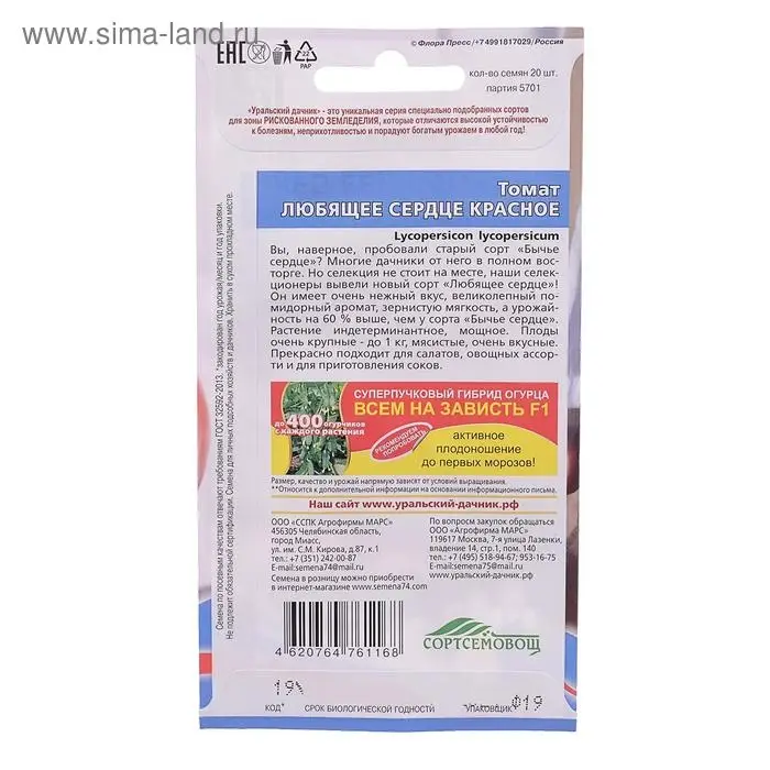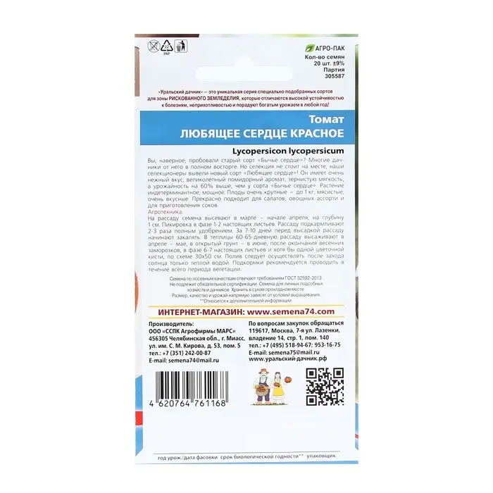 Семена Томат "Любящее Сердце" красное, высокорослый, крупноплодный, 20 шт