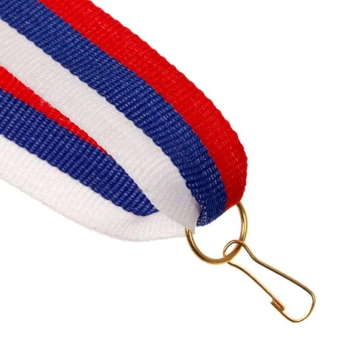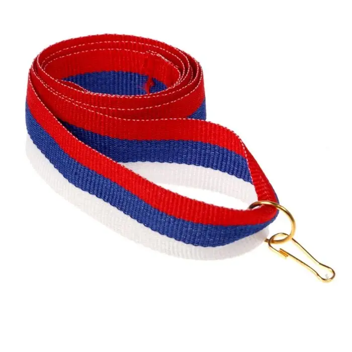 Лента для медали с крепким металлическим карабином золотистого цвета. Также идеально подходит в качестве носителя бейджа, наградной и представительской продукции. Наши ленты для медалей изготовлены из прочной ткани.