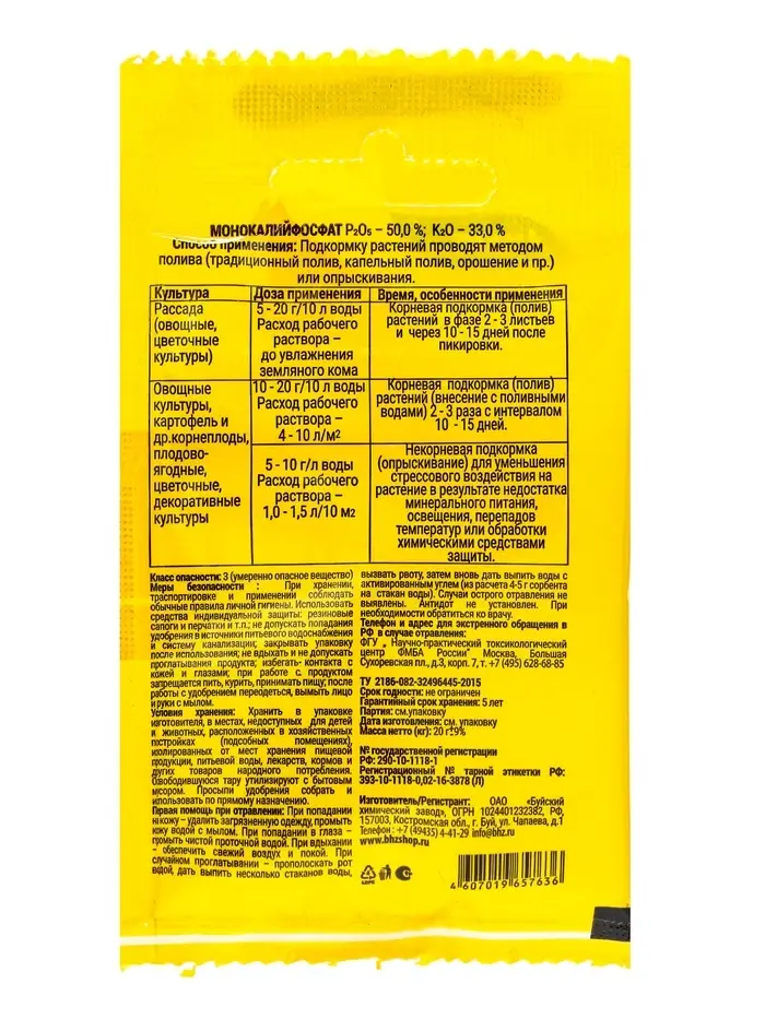 Удобрение минеральное Монокалийфосфат, 20 г