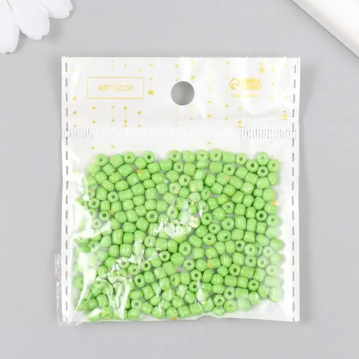 Бисер круглый 6/0 "Зелёный неон" 20 гр
