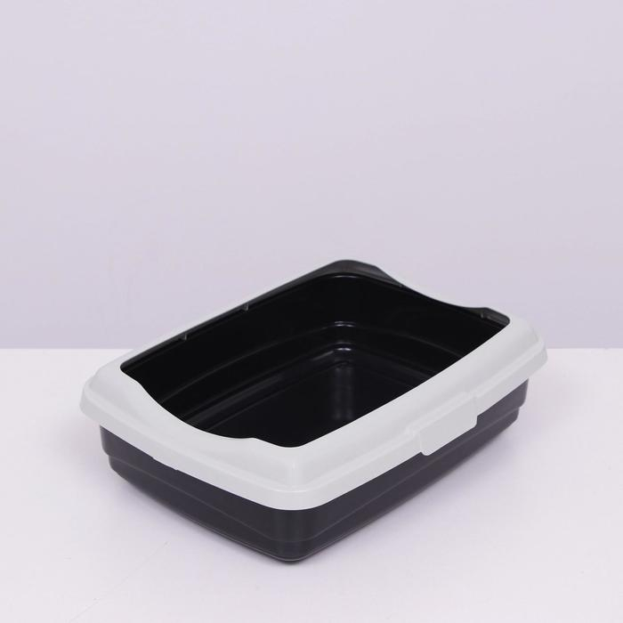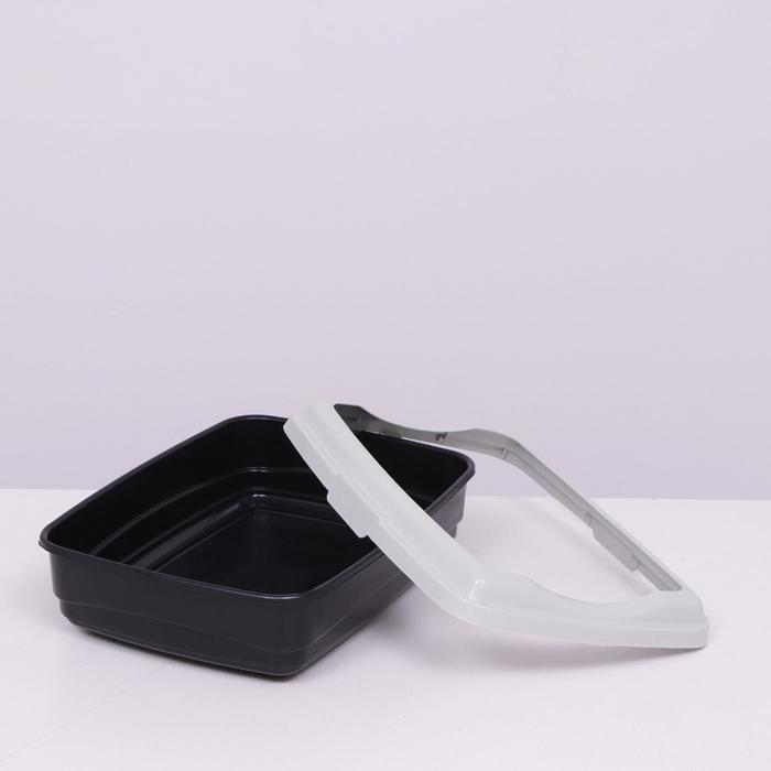 Пластиковый лоток для кошек с бортами удобен в использовании. Борт крепится защелками.
