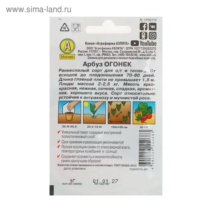 Благодаря внутреннему полиэтиленовому слою пакет не пропускает влагу и увеличивает срок годности семян до 2 лет.