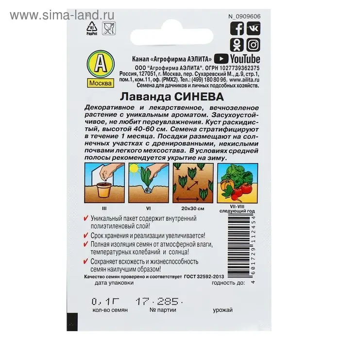 Как сажать. Лаванду размещают на солнечных участках с дренированными некислыми почвами лёгкого мехсостава. В условиях средней полосы рекомендуется укрывать на зиму. Выращивают рассадным способом. Необходима стратификация. Семена смешивают с влажным песком, выдерживают 3–4 недели в холодильнике при температуре 3–5 °С и высевают поверхностно под стекло. При развитии 1–2 пар листочков саженцы пикируют в отдельные горшочки.