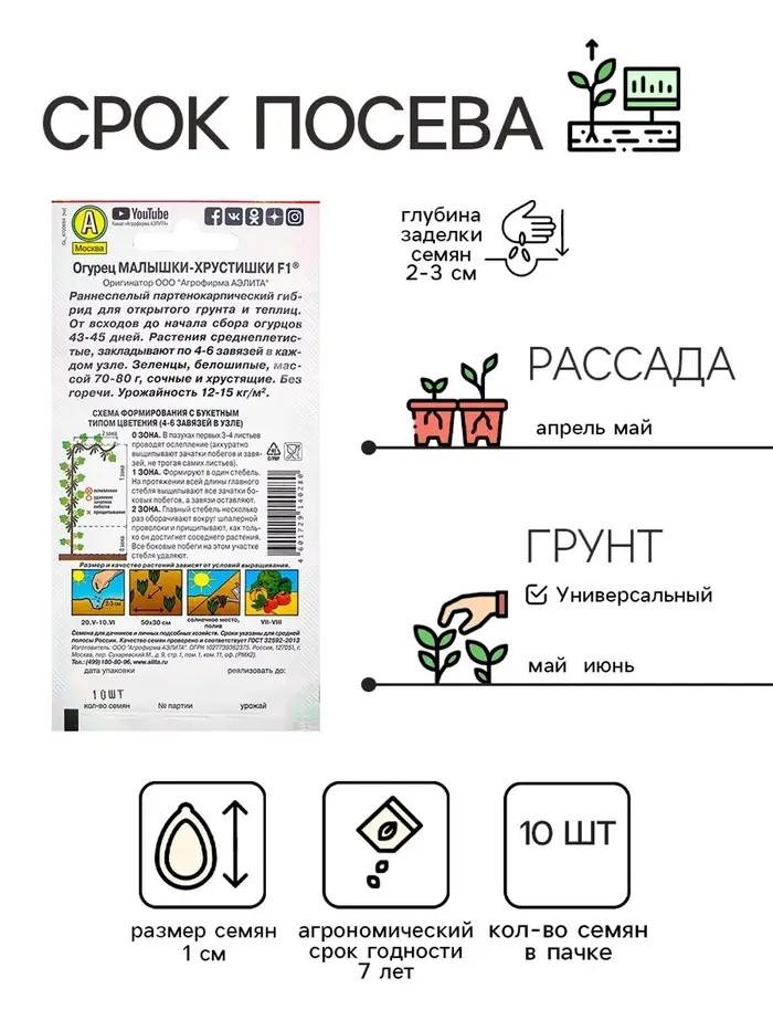 Семена Огурец "Малышки-Хрустишки" F1, раннеспелый, партенокарпический, 10 шт
