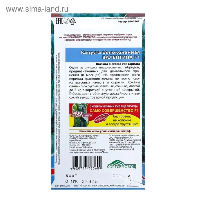 Семена Капуста белокочанная "Валентина F1" поздний,кочан 3,5-5 кг,очень плотный 0,1 г
