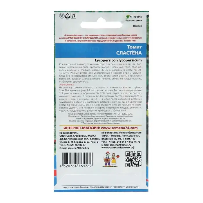 Семена Томат "Сластёна" высокоурожайный сорт для пленочных теплиц и защищенного грунта 20 шт