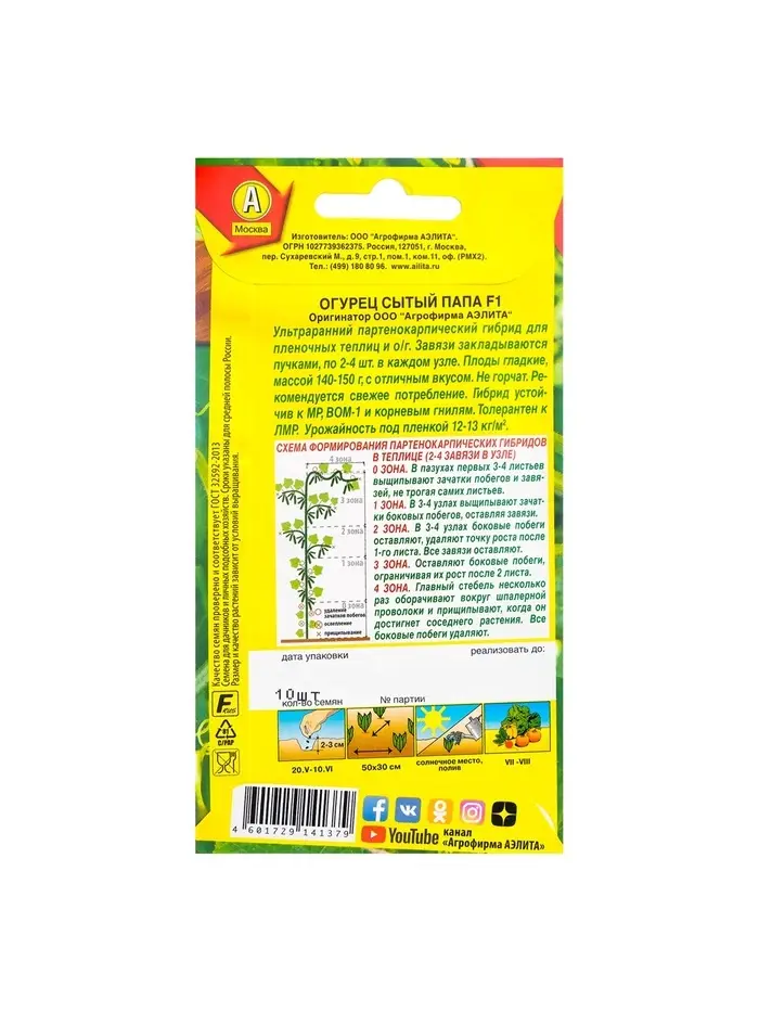 Семена Огурец "Сытый папа F1", 10 шт