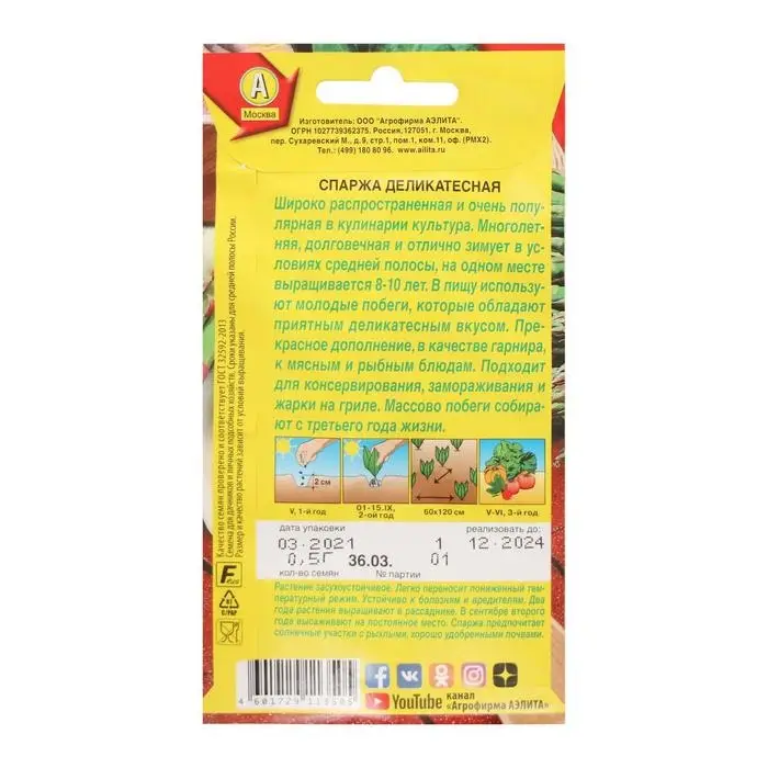Семена Спаржа "Мария", ц/п, 0,5 г