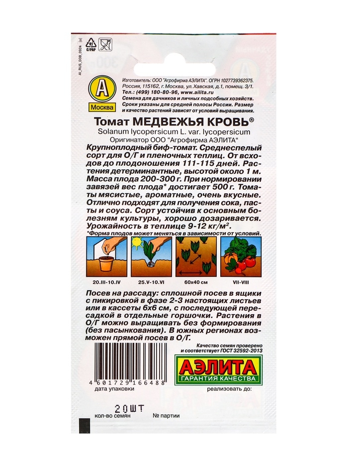 Семена Томат "Медвежья кровь", раннеспелый, детерминантный 20 шт
