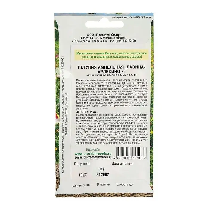 Семена цветов Петуния Ампельная лавина Арлекино F1, О, 10шт