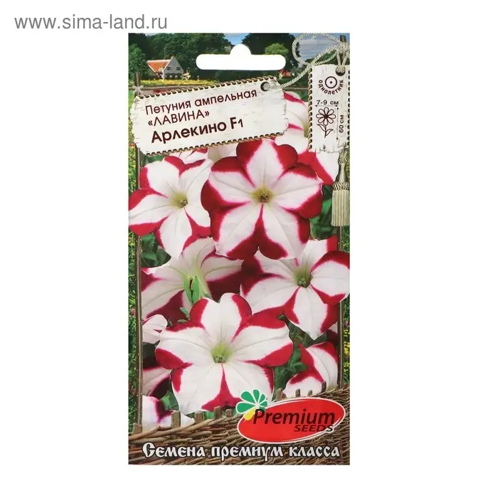 Восхитительная ампельная петуния серии “Лавина Е1”. Растение однолетнее, высотой 60 см. Цветки крупные, очень красивые, диаметром 7-9 см. Свисающие к земле побеги сплошь покрыты цветками. Представленный вид петунии обычно высаживают в вазы и высокие контейнеры, балконные и оконные ящики, но высаживают и в грунт. Быстро разрастаясь, они заполняют пустоты в цветнике, украшают каскадами зелени и цветов склон альпийской горки или берег водоема. Цветение обильное и продолжительное. Не теряет своей декоративности в течение всей вегетации.