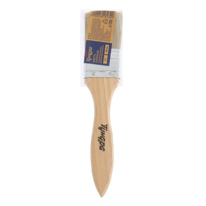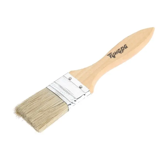 Кисть плоская ТУНДРА, смешанная щетина, деревянная рукоятка, 1.5", 38 мм