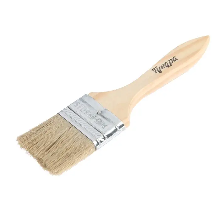 Кисть плоская ТУНДРА, смешанная щетина, деревянная рукоятка, 2", 50 мм