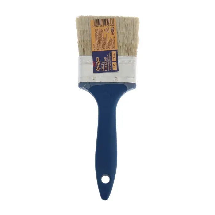 Кисть плоская ТУНДРА, смешанная щетина, пластиковая рукоятка, 2.5", 63 мм