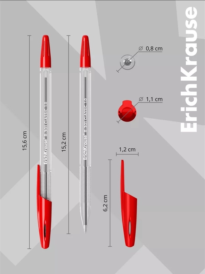 Ручка шариковая Erich Krause R=301 Classic Stick, узел 1.0 мм, чернила красные, длина линии письма 2000 метров, штрихкод на ручке