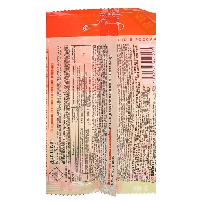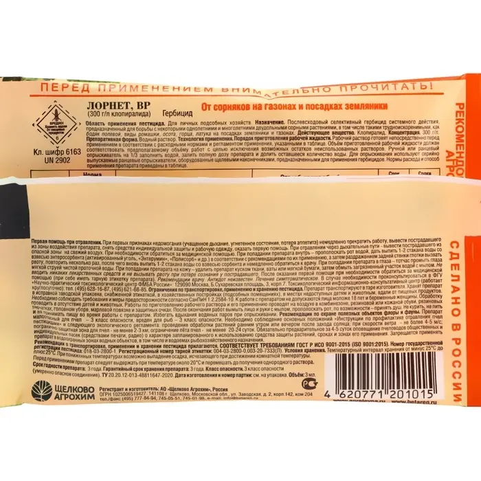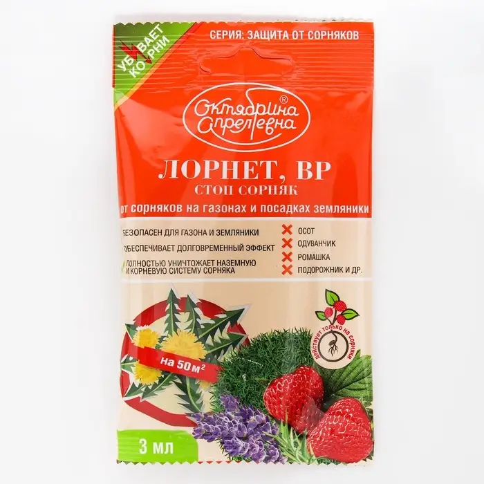 Гербицид для уничтожения сорняков на газоне и землянике "Лорнет", ампула, 3 мл