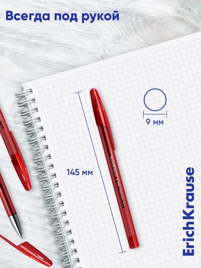 Ручка гелевая ErichKrause R-301 Original Gel, узел 0.5 мм, чернила красные, длина линии письма 600 метров