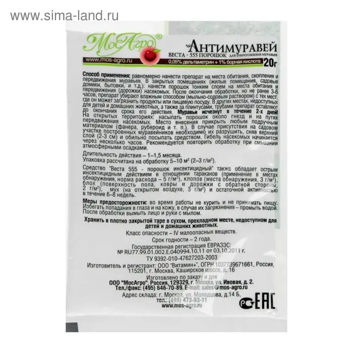 «Антимуравей» — это готовое к применению средство для борьбы с домовыми и садовыми муравьями. В его составе содержится наполнитель, привлекающий насекомых, поэтому они охотно посещают обработанные места.