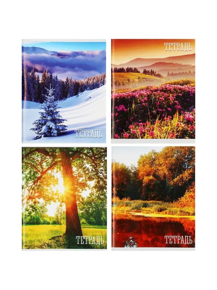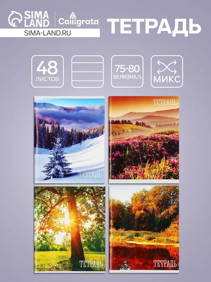 Тетрадь 48 листов в клетку, Calligrata «Времена года», серые листы, МИКС